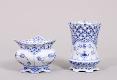 Vase und Zuckerschale, Royal Copenhagen, Dekor "Musselmalet" Vollspitze, 1970er Jahre