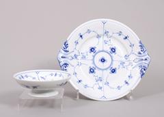 Gebäckteller und Fußschale, Royal Copenhagen, Dekor "Musselmalet gerippt", um 1966/67