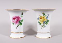 Paar Trompetenvasen, Meissen, Dekor "Deutsche Blume" sowie "Rote Rose", Pfeifferzeit (1924-34) bzw. nach 1972