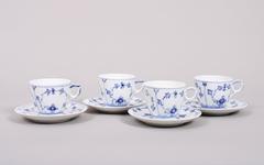 Vier Kaffeetassen mit Untertassen, Royal Copenhagen, 1967/85, Dekor "Musselmalet gerippt"
