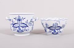 Zwei Cachepots unterschiedlicher Form, Meissen, Dekor "Zwiebelmuster", 2. Hälfte 20.Jh.