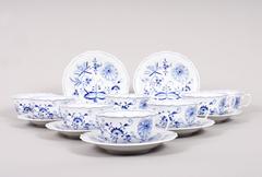Acht Teetassen mit Untertassen, Meissen, Form "Neuer Ausschnitt", Dekor "Zwiebelmuster", 20.Jh.