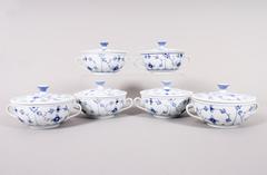 Sechs Suppentassen mit Deckel, Bing & Gröndahl, Dänemark, Dekor "Musselmalet", 20.Jh.