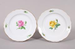 Paar (Wand-)Teller, Meissen, Form "Neuer Ausschnitt", Dekor "Rote und gelbe Rose", 20. Jh.