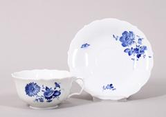 Teetasse mit Untertasse, Meissen, Form "Neuer Ausschnitt", Dekor "Blaue Blume", 20. Jh., 2. Wahl