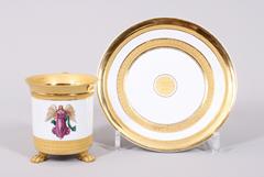 Mokkatasse mit Untertasse, Meissen, Form "Neuer Ausschnitt", Dekor "grüner Hofdrache", um 1900/ Anfang 20. Jh.