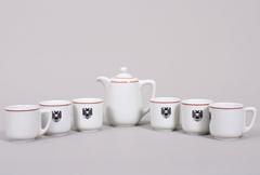 Kleines Konvolut Geschirrteile, Hutschenreuther/Bauscher, 1946/49, Porzellan, rot/schwarz dekoriert