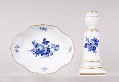 Kerzenleuchter und Anbietschale, Meissen, Dekor "Aquatintablume", Fertigung nach 1972