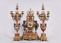 Große Kaminuhr mit 2 Girandolen, Franz Hermle, deutsch, 2. Hälfte 20.Jh.