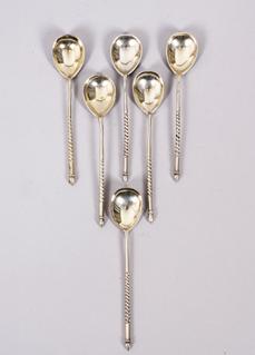 Sechs Mokkalöffel in Schatulle, 84 Zolotnik Silber, Moskau, Ende 19.Jh.