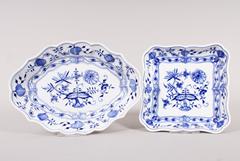 Zwei Schalen und zwei Aschenbecher, Meissen, Dekor "Deutsche Blume" und "Gelbe Rose", 20.Jh., überwiegend 2. Wahl