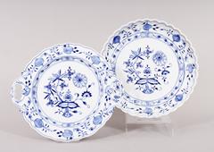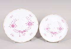Zwei Kuchenplatten/ -teller, Meissen, Form "Neuer Ausschnitt", Dekor "Indisch Purpur", 20.Jh.