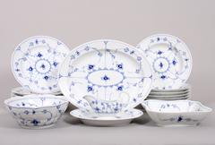 Kleines Speiseservice, Royal Copenhagen, Dekor "Musselmalet" gerippt, 1960er/70er Jahre, 17-tlg.