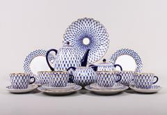 Kaffee-Service für 6 Personen, Lomonossow, St. Petersburg, Dekor "Kobaltnetz", 20.Jh.