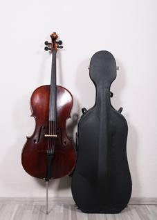 4/4 Cello nach Maggini, mit Bogen in original Koffer, wohl deutsch, um 1900