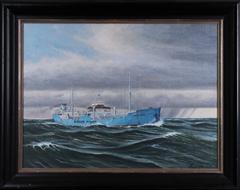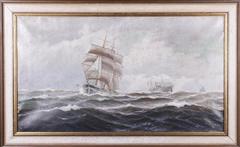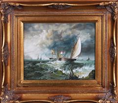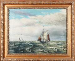 Niederländisches Flachboden-Segelschiff in stürmischer See, 20. Jhdt.