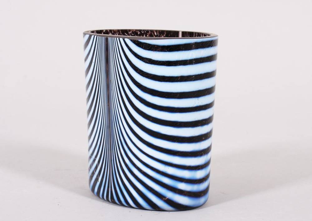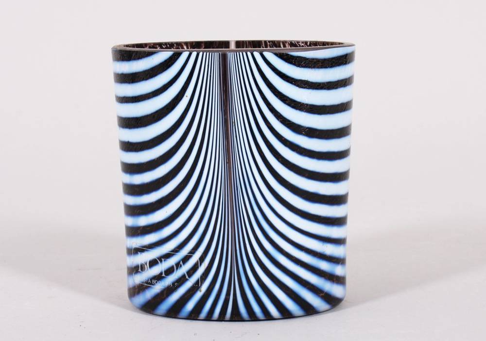 Glass, black and white overlaid, tall rectangular oval body, signed "Boda B. Valien" on the base, maker's label on the side, height approx. 8 cm, slight signs of age