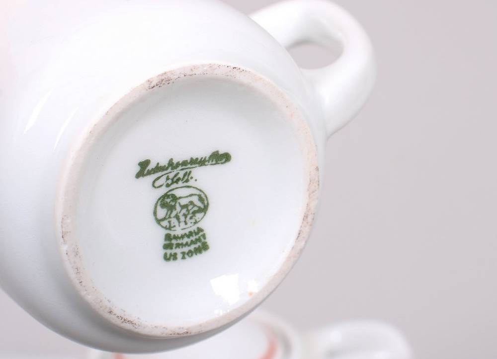 Small set of tableware, Hutschenreuther/Bauscher, 1946/49, porcelain, decorated in red and black