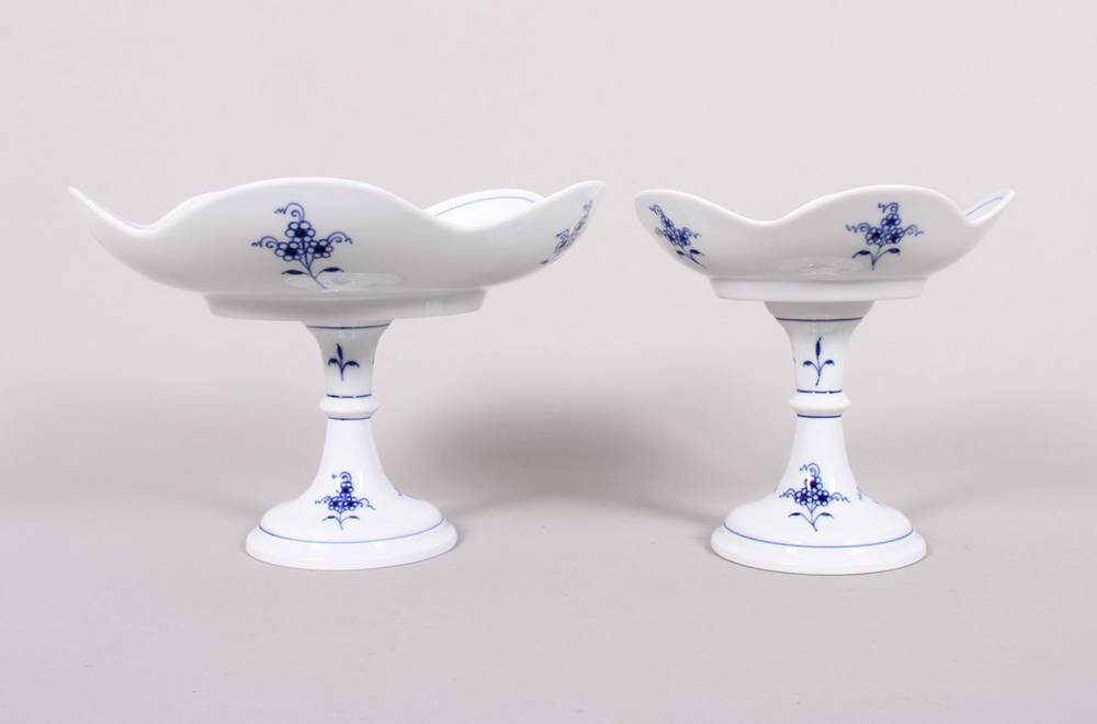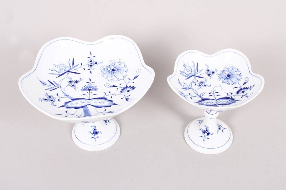 Two footed bowls of different sizes, Meissen, "Onion Pattern" decoration, second half of the 20th century