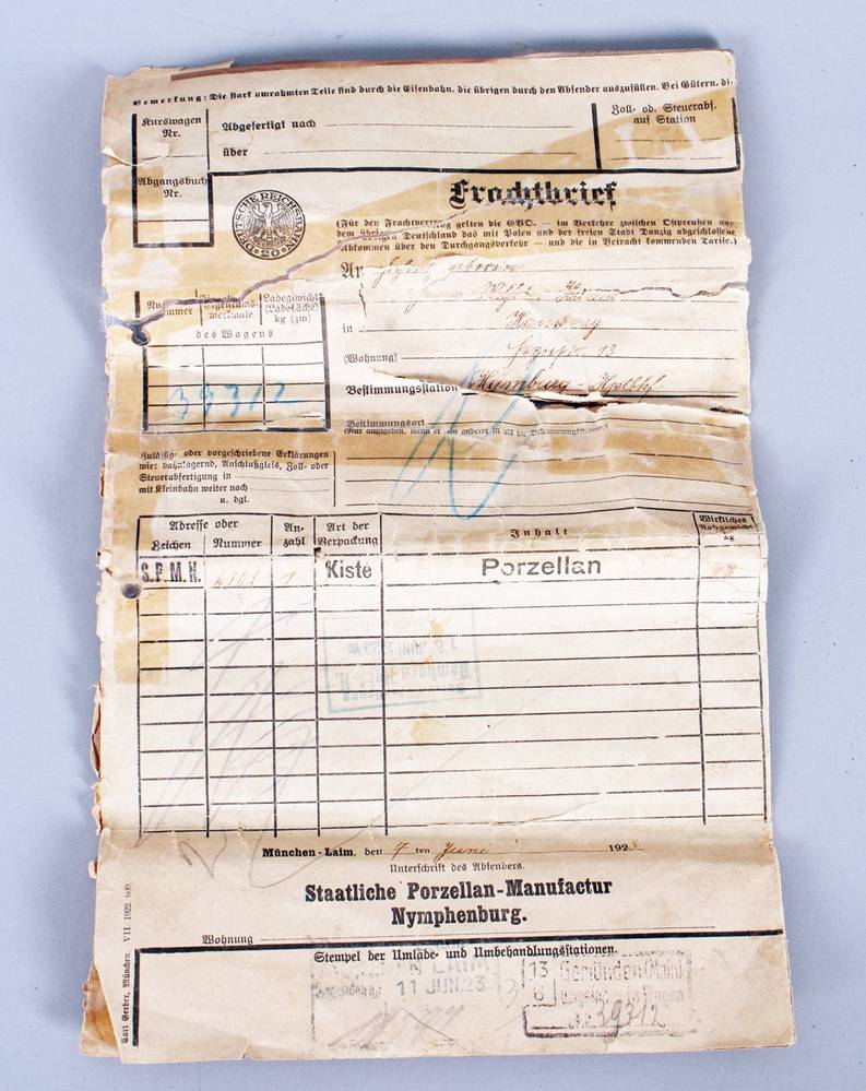 beiliegend original Frachtbrief der Manufaktur, dat. 1923