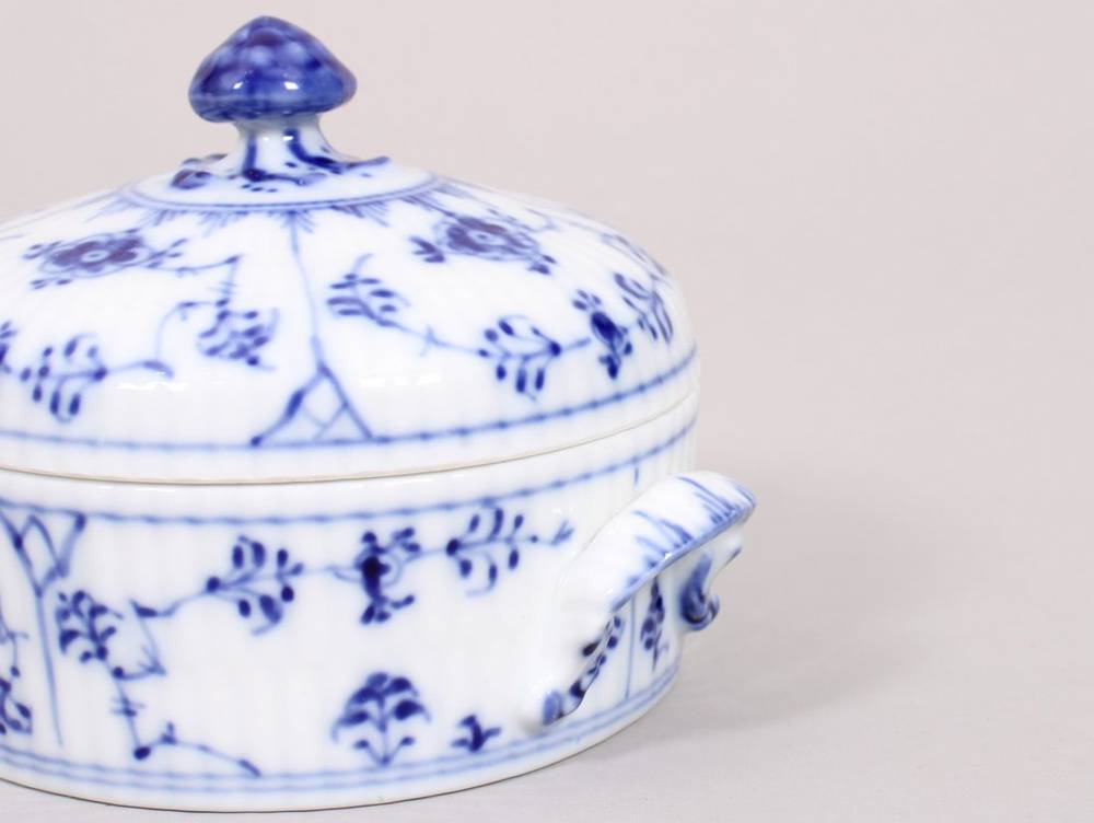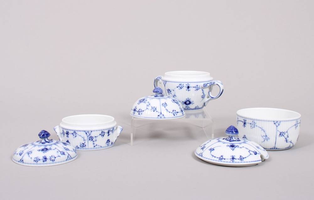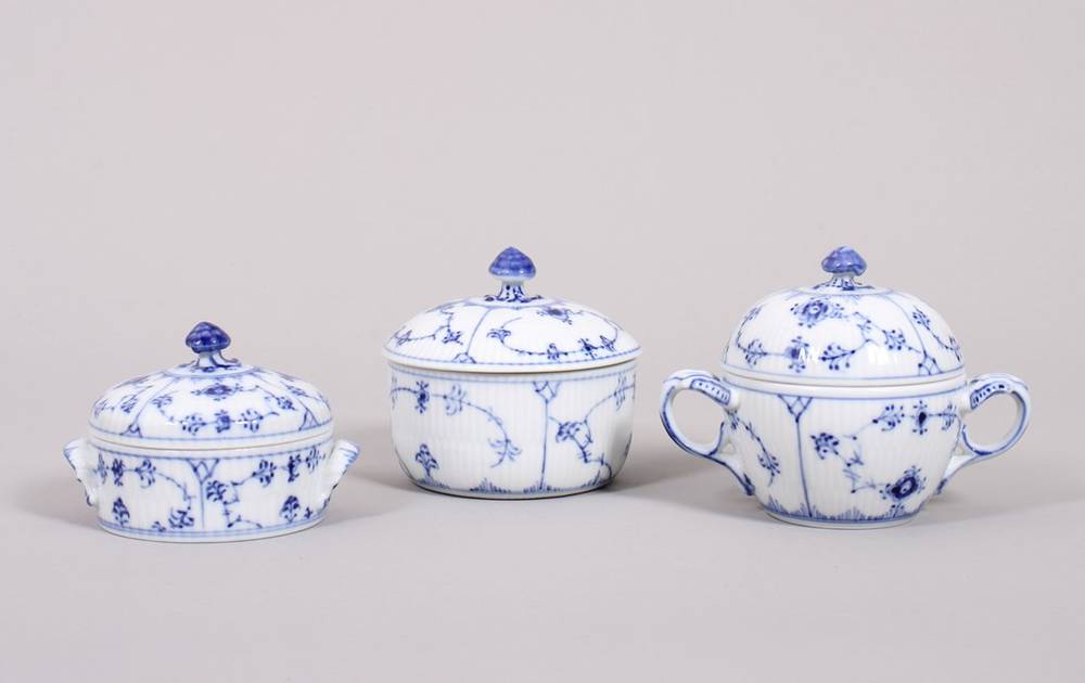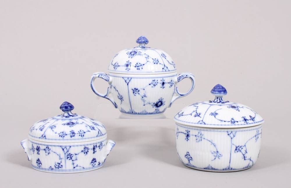 3 variierende Deckeldosen, Royal Copenhagen, um 1967/69, Dekor "Musselmalet gerippt"