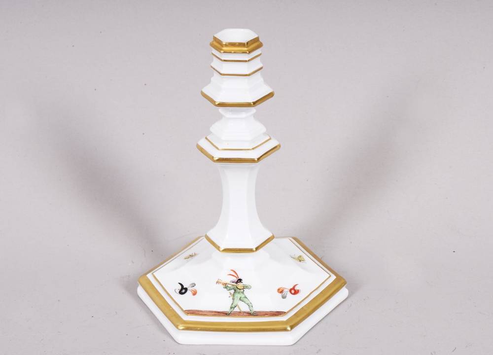 Tafelleuchter, Meissen, Formentwurf Johann Jacob Irminger (1635-1724?), Harlekindekor, Edition "Freunde des Meissener Porzellans" 2001/2002