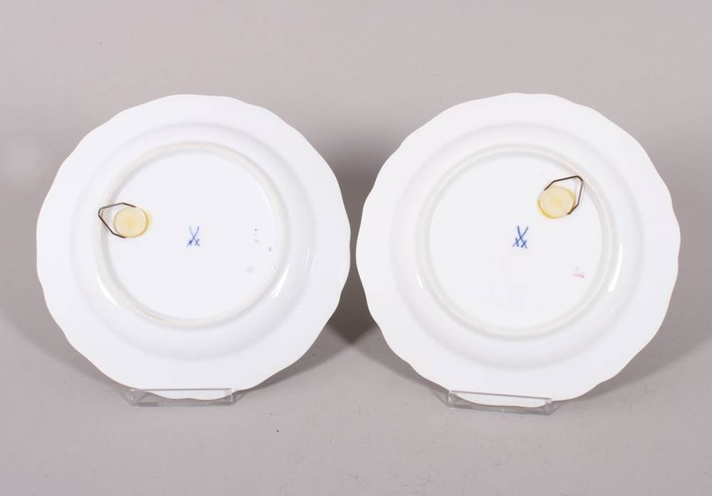 Paar (Wand-)Teller, Meissen, Form "Neuer Ausschnitt", Dekor "Rote und gelbe Rose", 20. Jh.