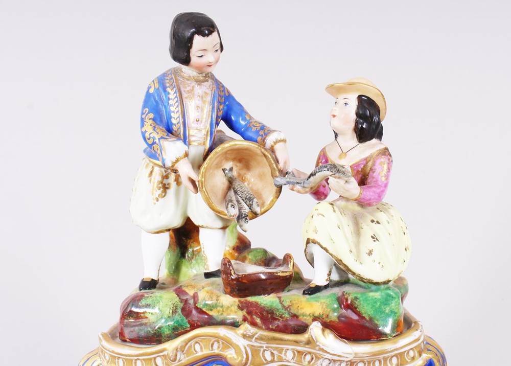 Kaminuhr "Fischerpaar", wohl Thüringen, 1. Hälfte 19.Jh.