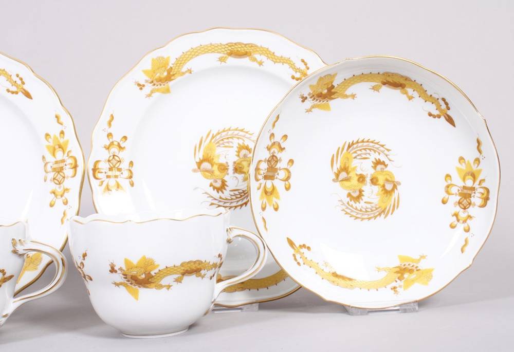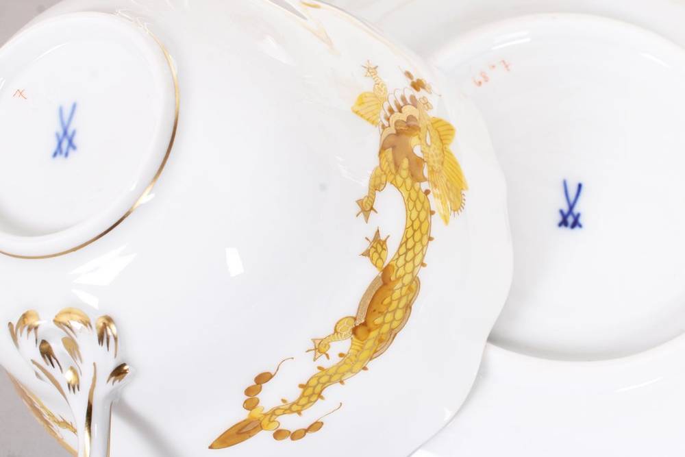 Paar Gedecke, Meissen, Form "Neuer Ausschnitt", Dekor "reicher gelber Hofdrache", 20.Jh.